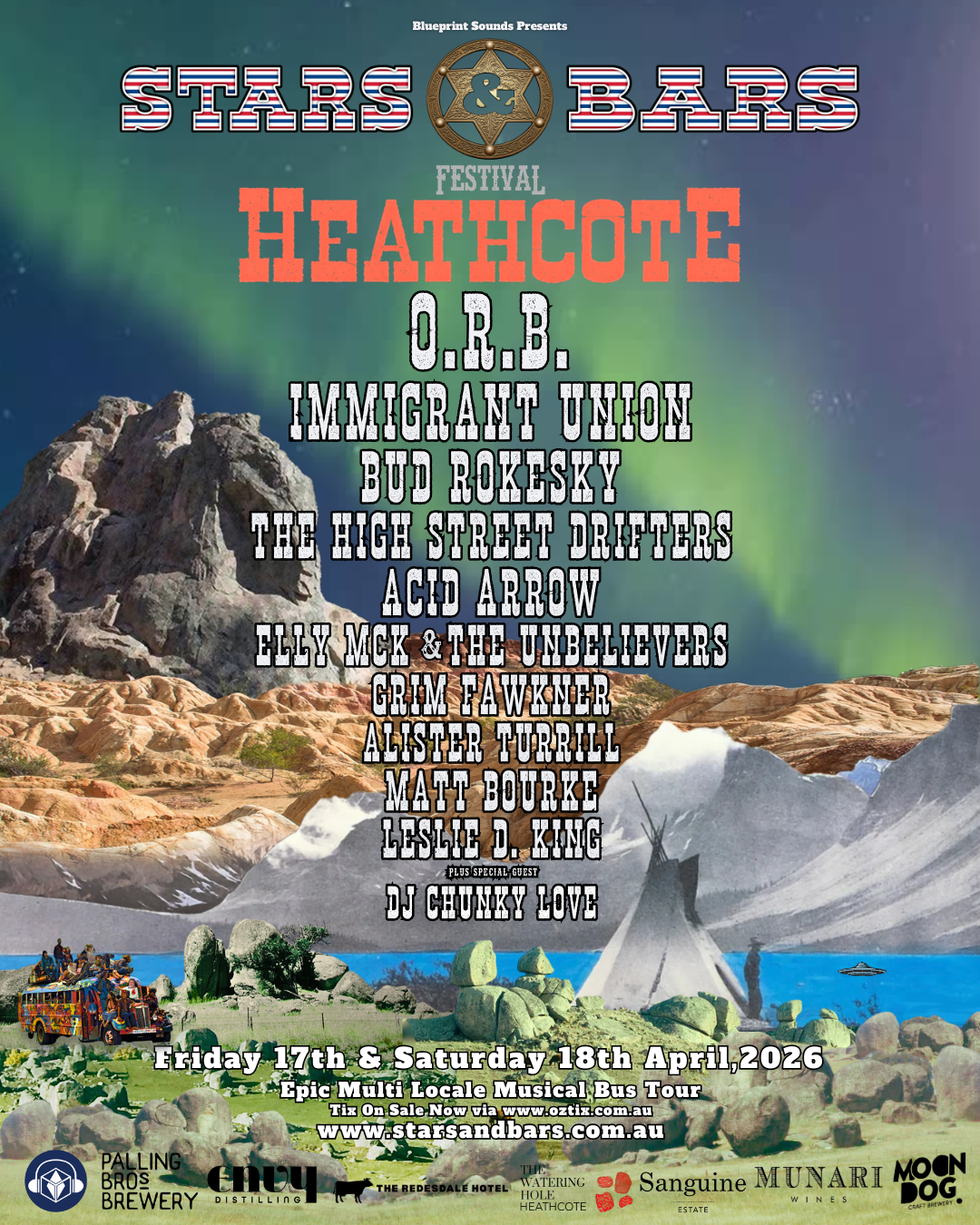 The Trail Blazin', Star Gazin', Hell Raisin' Countrified Music Festival Concept, part magical mystery music bus tour part winery/brewery tour rides again to soundtrack your sonic sojourn in Central Victoria’s Heartland.