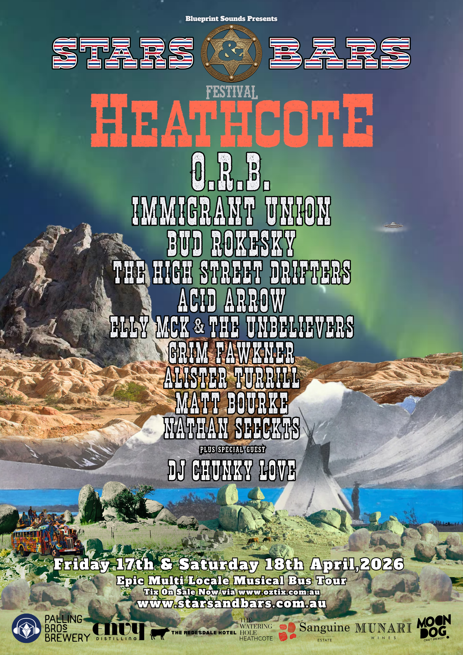 Stars & Bars Festival Heathcote brings together an assemblage of amazingly talented artists with some unique Central Victorian Goldfields locales; combined with an exploration of the region's exceptional wines, craft beers, artisanal spirits, local produce as well as that famous Heathcote Hospitality.