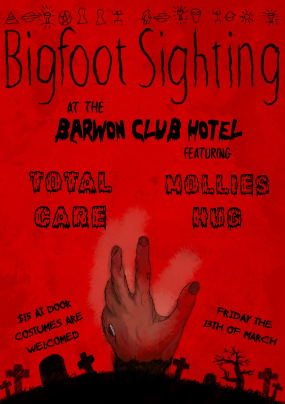 'Join Bigfoot Sighting for their upcoming EP Launch, Get Spooky at The Barwon Club on Friday 13th March, 2026 from 7:30pm