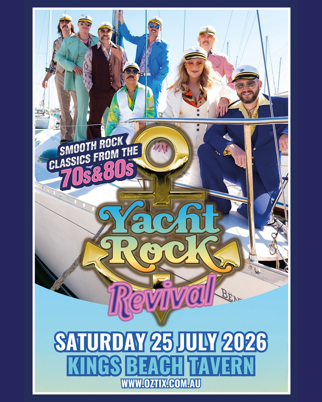 Yacht Rock Revival is Australia’s premier tribute to the golden era of smooth. This dazzling 8-piece supergroup delivers an unforgettable night of soft rock nostalgia, faithfully recreating the slick sounds and velvet grooves of the late '70s and early '80s. With precision musicianship, rich harmonies, and a world-class horn section, Yacht Rock Revival celebrates the iconic hits of Toto, Michael McDonald, Christopher Cross, Hall & Oates, Boz Scaggs, The Doobie Brothers, Steely Dan, and many more. Dressed to impress in era-perfect attire and oozing with tongue-in-cheek charm, this isn’t just a show — it’s a full-scale, immersive experience that transports audiences straight to the sun-soaked decks of the yacht rock era.