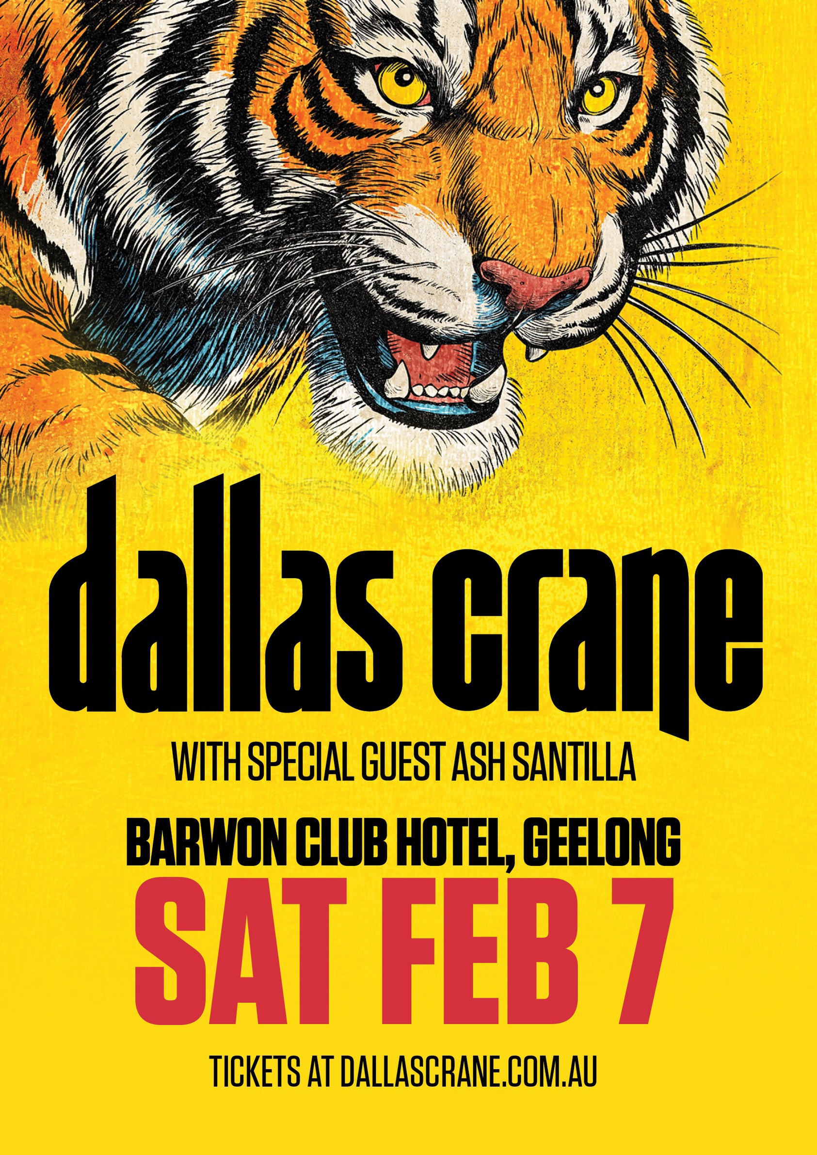 Dallas Crane return to The Barwon Club bandroom in Geelong on Saturday 7th February, 2026!