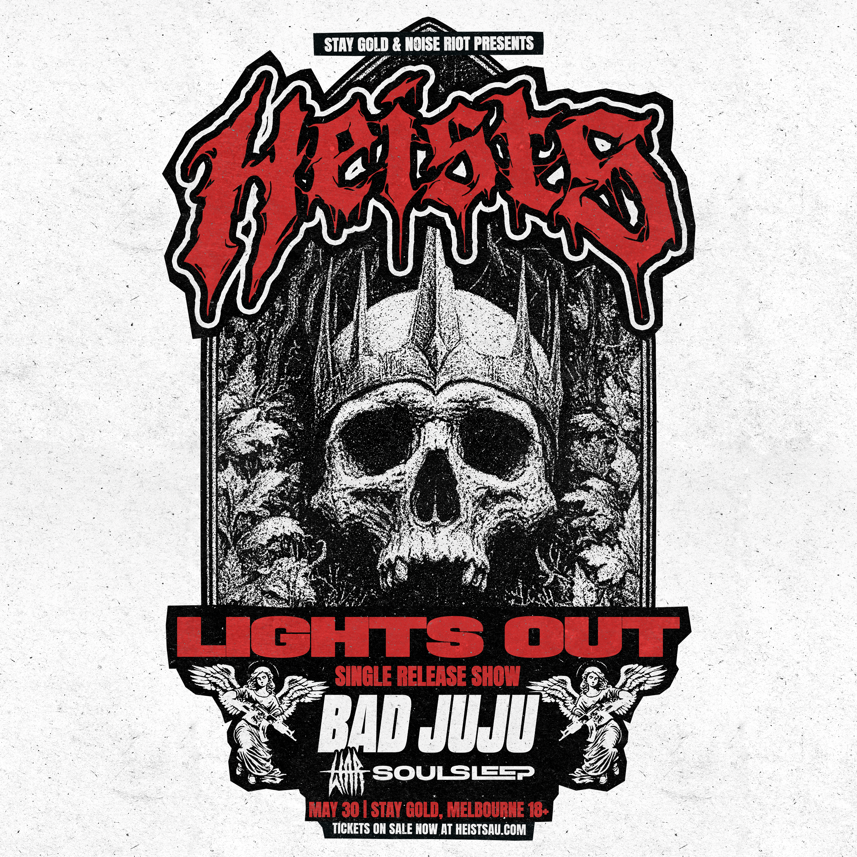 This May, Sydney’s modern metalcore titans HEISTS return to Melbourne to celebrate the release of their crushing new single, ‘Lights Out’, joined by BAD JUJU, and local favourites, LIAR, and SOULSLEEP.