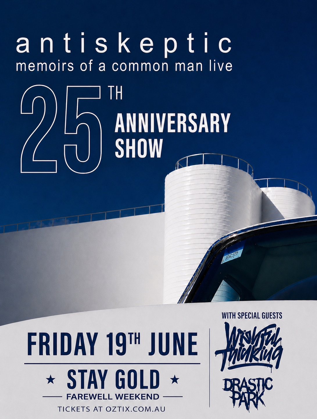 ANTISKEPTIC return to celebrate 25 YEARS of Memoirs of a Common Man β inside the four walls of Stay Gold during the venue's closing run.